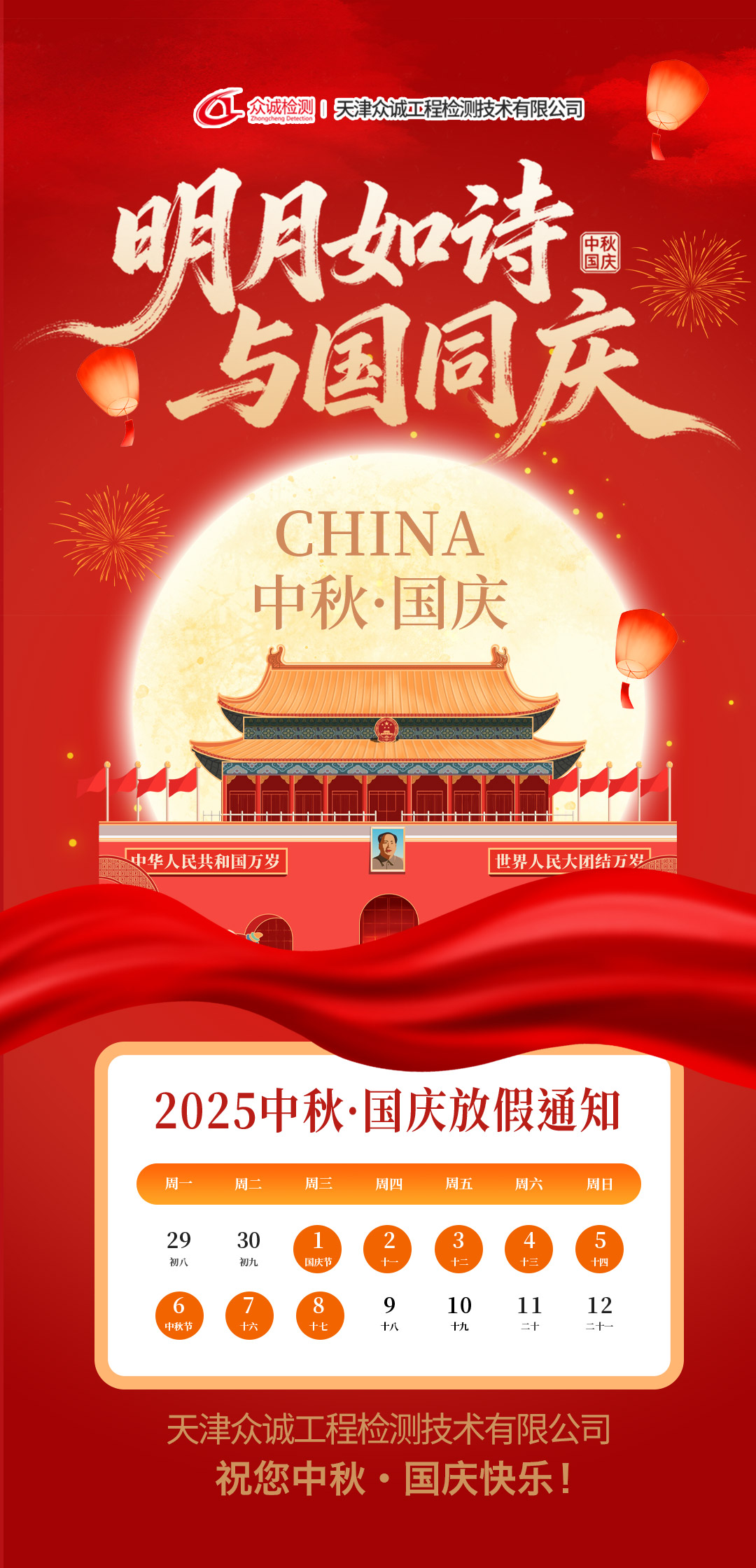 国之庆典,月满人团圆;双节同庆,家国共欢颜