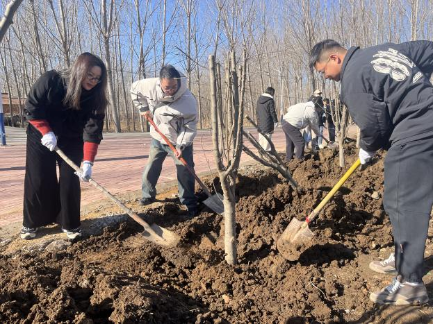 活动现场气氛热烈、秩序井然。各会员单位代表分工协作、默契配合,挥锹铲土、扶苗扶正、填土压实、提水浇灌,每一道工序都认真细致、规范有序。大家以饱满的热情投入劳动,汗水与春光相映,身影与绿意相融,原本空旷的场地很快便挺立起一排排树苗,焕发出勃勃生机。参与人员纷纷表示,亲手栽下树苗,既是为城市添绿,更是践行行业使命、传递责任担当。